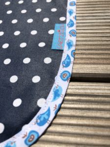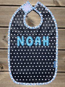 Posted on 14. Juli 20189. April 2019 by SandraLätzli für NOAHNoah – Dunkel blaues Lätzchen mit weissen PunktenApplikation aus passendem Stoff mit hellblauer Nahtherziges Vögeli/Öpfel BündchenKlettverschluss weissaus beschichteter Baumwolle