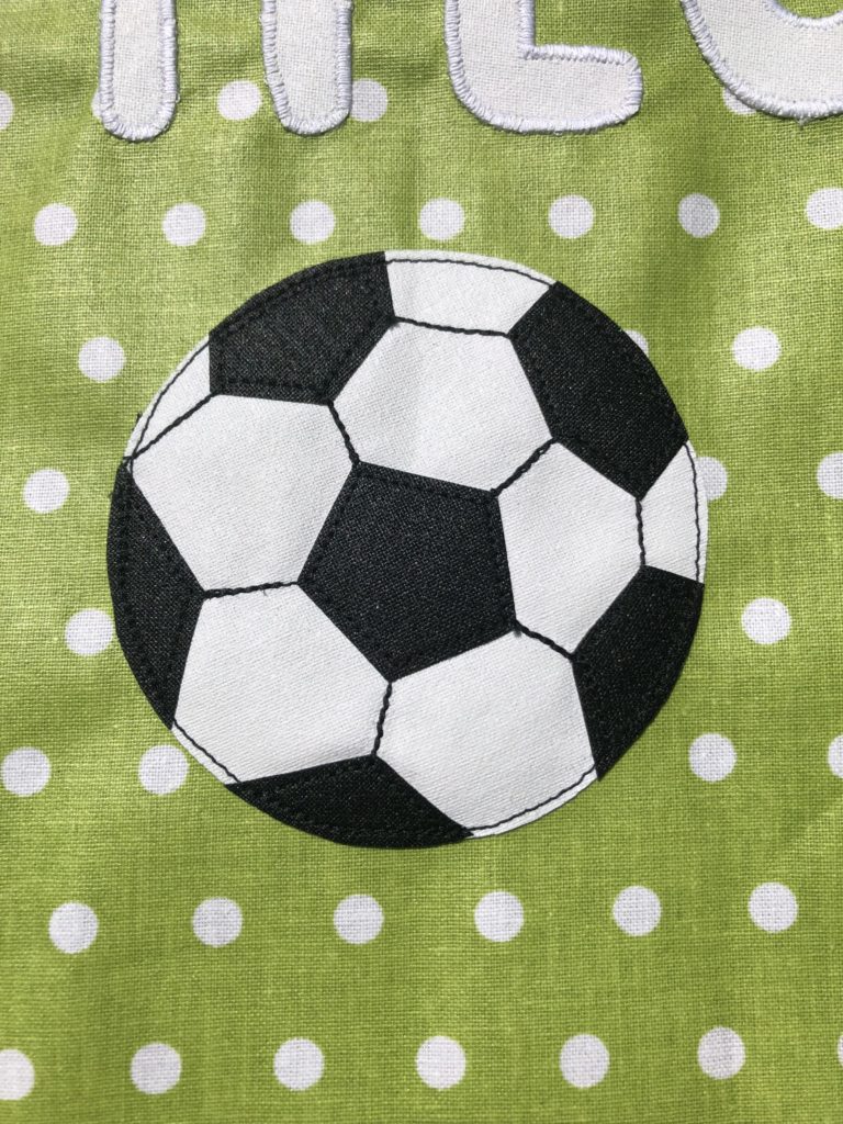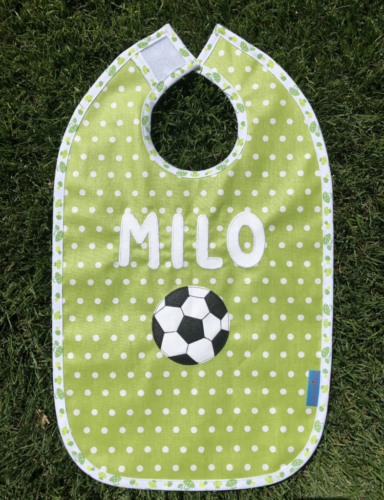 Posted on 10. August 201910. August 2019 by SandraNeue Applikation – Fussball verfügbar!Grüner Stoff mit weiss-grünem BündchenKlettverschluss weissaus beschichteter BaumwolleMilo -Fussball ApplikationMilo – Lätzli mit Fussball