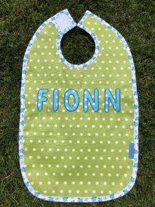 Fionn – Hellgrünes Lätzchen mit weissen Punkten.
