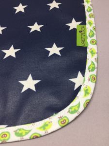 - Applikation aus passendem Stoff mit grüner Naht